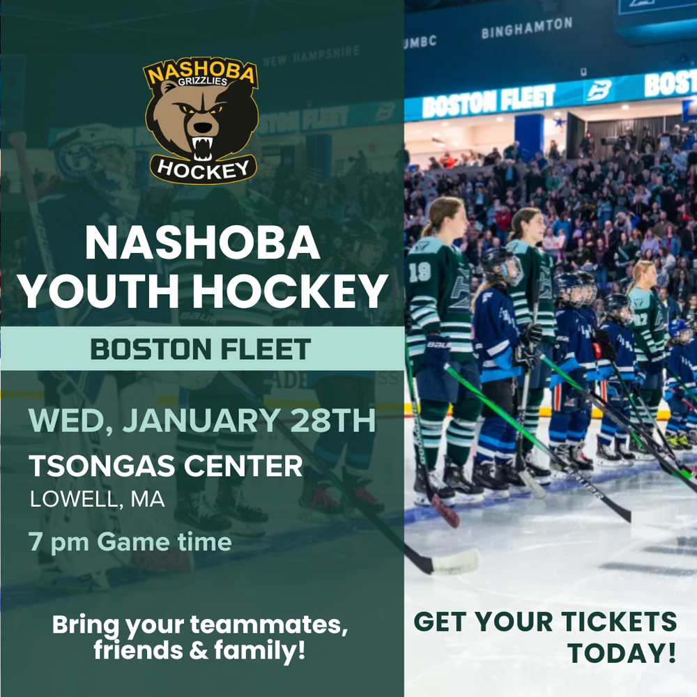 Once 125 tickets are sold, Nashoba Youth Hockey will unlock the Intermission Skate and Anthem Buddies experiences — giving players a chance to take the ice with the pros!