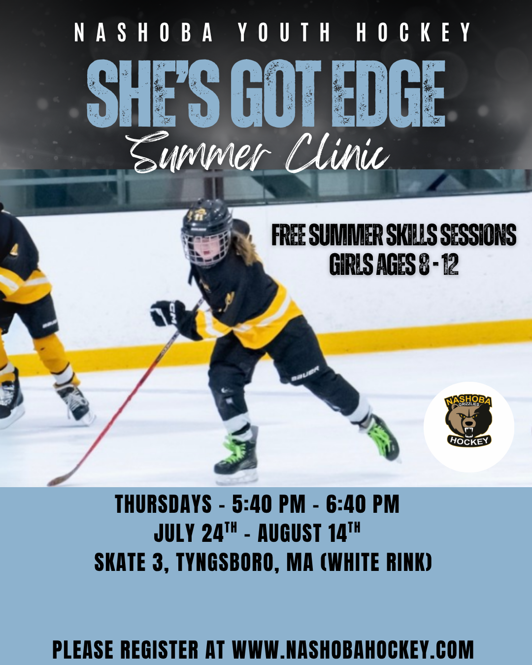 There is still time to register for one of our girl's teams! To learn more, visit the Nashoba Youth Hockey Girls Hockey Program page or reach out to the Director of Girl's Hockey, Joe Savioli, at joe@nashobahockey.com